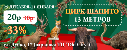 🎄20 декабря-11 января! Цирк-шапито "13 метров" за 20 р. в Гродно. Встречайте Новый год с волшебством!